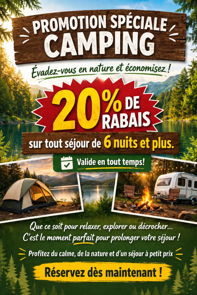 Très beau camping, super bien si vous voulez de la tranquillité, belle grandeur de terrain, petit aire de jeux pour enfants et belle piscine et aussi un beau lac,Je le recommande fortement, on va y revenir c'est certain,on a adoré notre séjour, un gros merciii